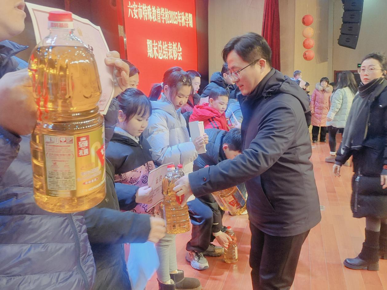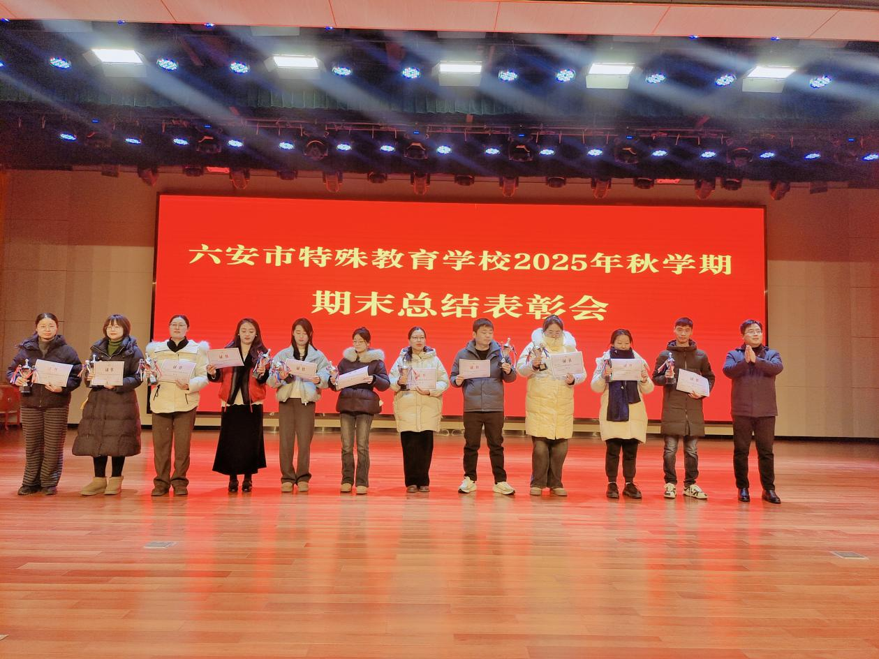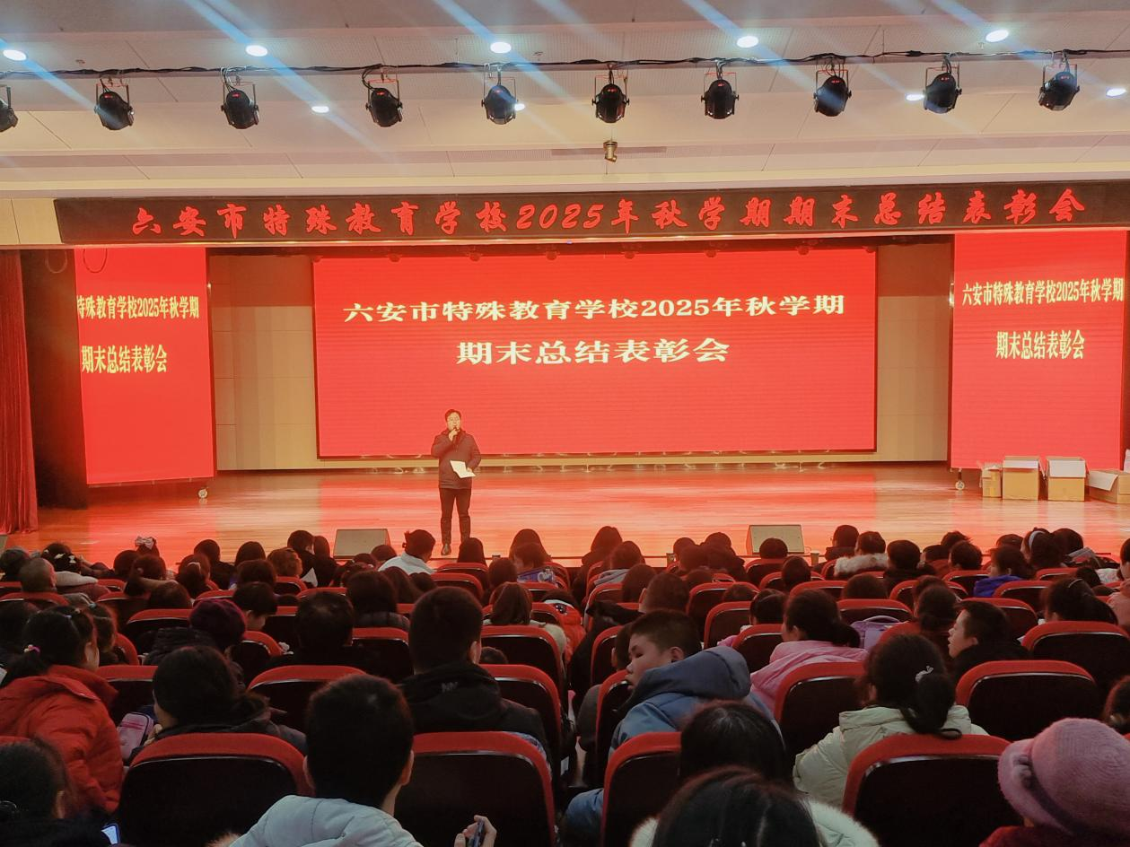 为全面总结本学期教育教学工作,表彰先进典型,激励全校师生砥砺前行,临近期末,六安市特殊教育学校隆重举行了2025年秋学期期末总结表彰大会。全校师生及家长齐聚一堂,领略师生风采,展望崭新未来。
